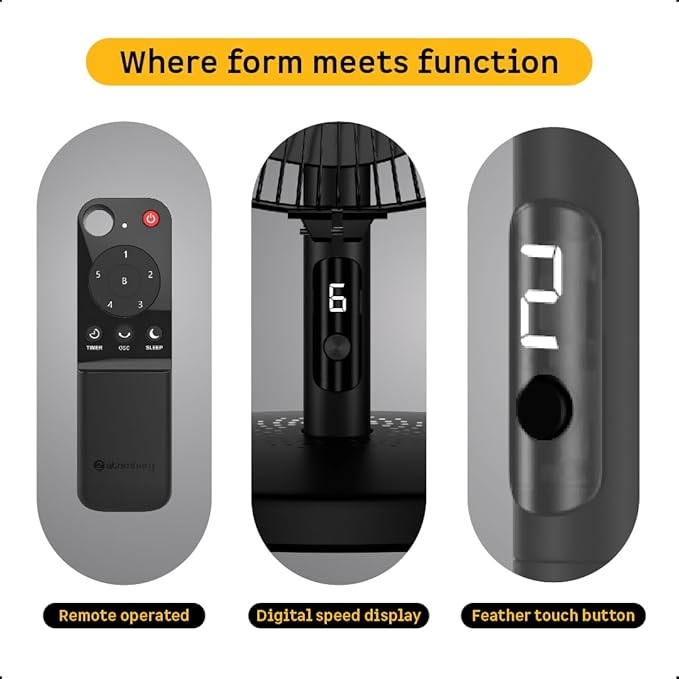 - REMOTE CONTROL CONVENIENCE: Atomberg Renesa table comes with an IR Remote for effortless control, allowing you to adjust speed, activate Boost mode, set timers, enable Sleep Mode with a single click or enable oscillation/swing mode. This remote is universal across Atomberg fans and does not need to be paired, allowing easy operation.