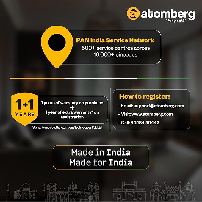 - 1+1 YEAR WARRANTY: Atomberg Studio+ exhaust fan comes with a standard one-year warranty. An additional one-year warranty can be availed by registering purchase on the Atomberg website.