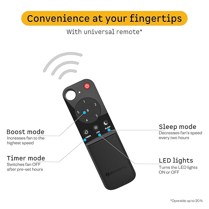 - REMOTE CONTROL CONVENIENCE: Atomberg Studio Nexus comes with a Smart IR Remote for effortless control, allowing you to adjust speed, activate Boost Mode, set timers, or enable Sleep Mode with a single click. This remote is universal across Atomberg fans and does not need to be paired, allowing easy operation.