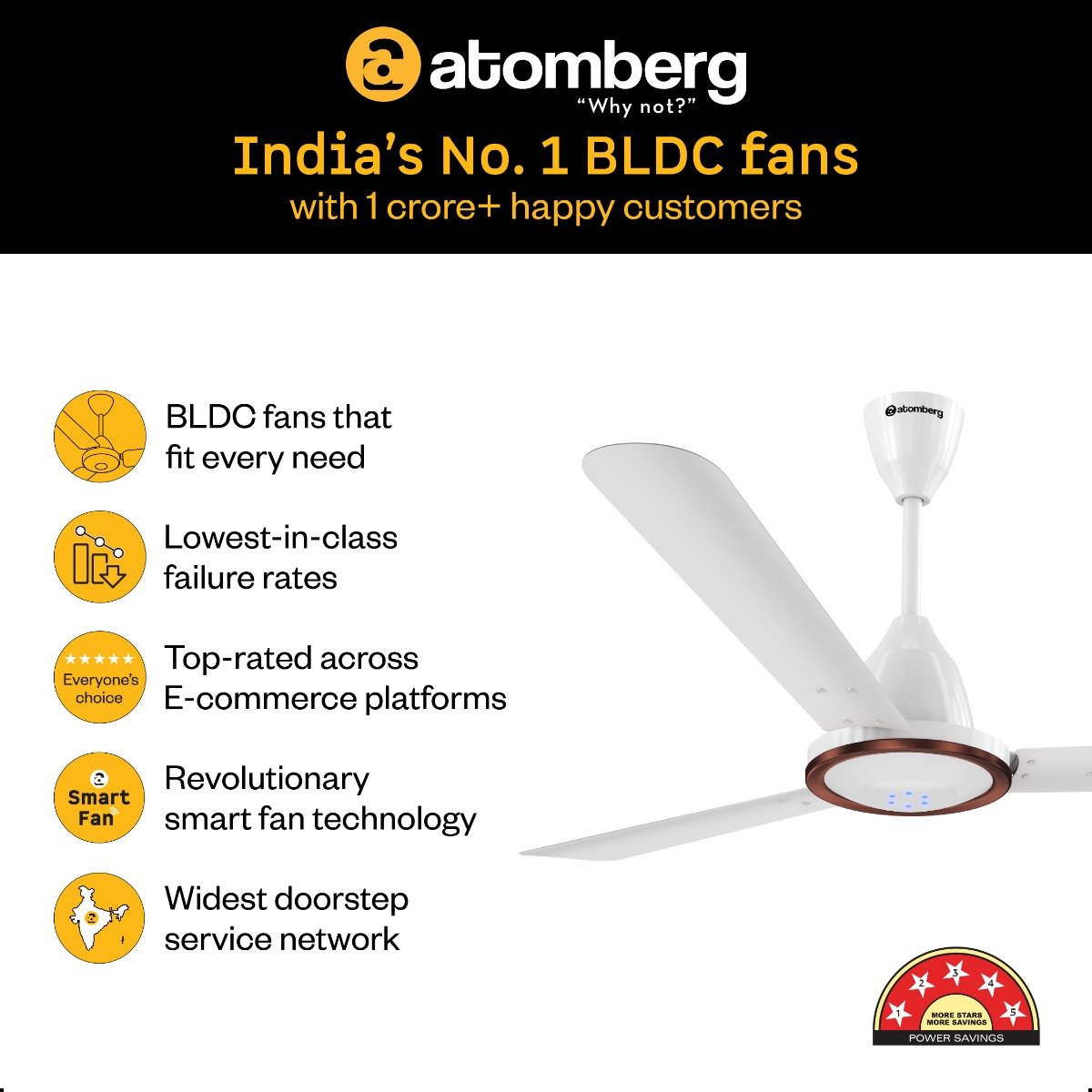 Atomberg Erica Meta 1230mm Designer BLDC Ceiling Fan with Remote | 5-star | Best- in-class Air Delivery | New Blade Design | Low noise | LED Speed Indicator | 2+1* Years Warranty