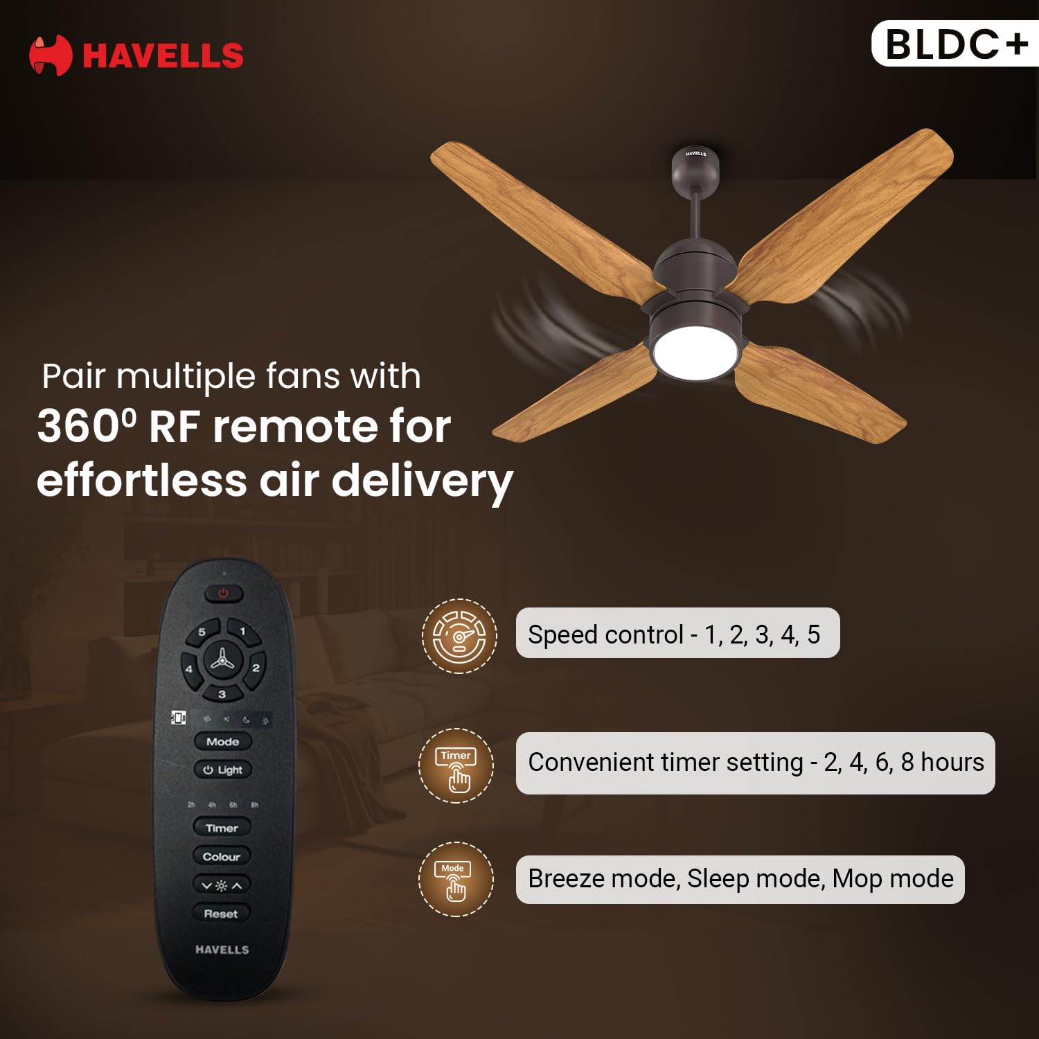 Havells 1200mm Momenta Underlight BLDC+ Ceiling Fan | Remote Controlled, Smart Fan, IoT Enabled, Alexa & Google Home Compatible | Upto 60% Energy Saving, 2 Year Warranty